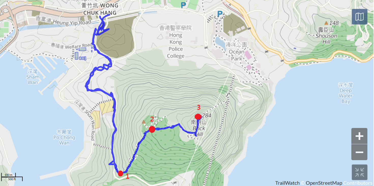 路綫:黃竹坑>南朗山道>休憩公園>南朗亭>山頂 (沿路折返)