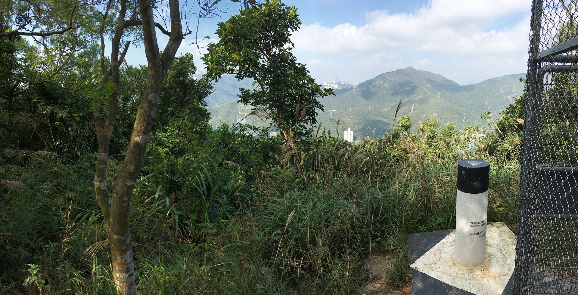 過了南朗亭,需走一段泥路才接上另一段樓梯攻頂。現時為大頭茶花盛放花期,整個山頭都開了一朵朵白白的茶花!經過直昇機坪後再沿樓梯上到頂,只見眺望樂園動感快車、翻天覆地、登山纜車,卻未見標記柱蹤影。原來它隱藏於發射站後,需穿過少許樹叢方達,有興趣集郵「kill標」者要留意啦。該處還可看到IFC 的頂層呢!繞到較矮發射塔後方,便可飽覽深、淺水灣景色,和在它們之間的小島熨波洲。