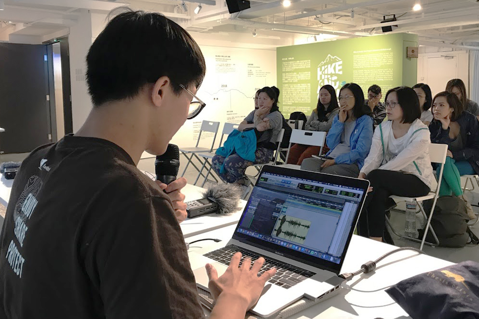 Apart from designing and setting up the ambient sound for the exhibition, AK Kan, nature sound recordist, also organised a workshop to Tai Tam Country Park to introduce nature sound recording to TrailWatch users. The workshop challenged the participants to discover and experience nature through a different sense.