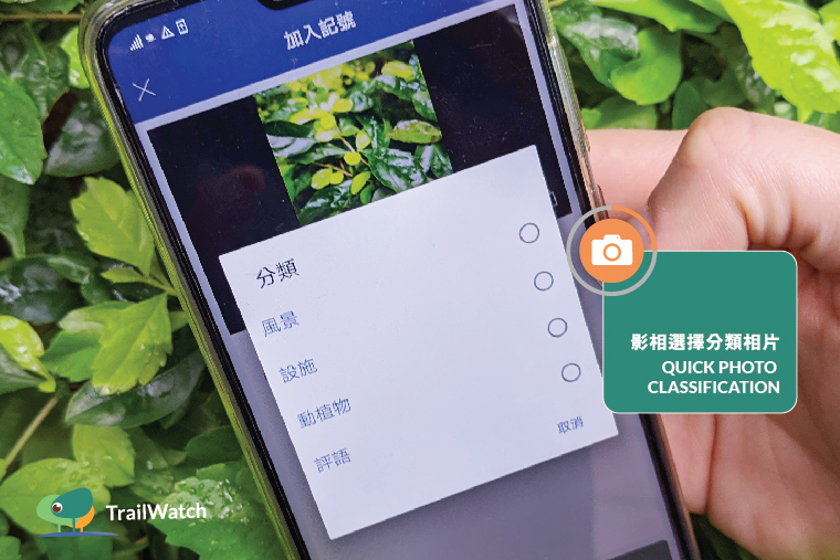 How to hike and take pictures efficiently? TrailWatch photo function supports simple classification and description/ notes taking. Corresponding icons will be displayed on the route record, you can also change the photo type and text after the route and photo upload is completed.