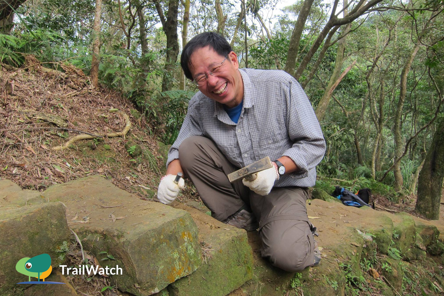 After writing his book, The 3/4 of Hong Kong, Liu continued to participate in both the sustainable trail project in Hong Kong and learning to restore the Chashan Historic Trail in suburban Taipei. Consequently, he has developed extreme sensitivity to the condition of trails. Every trail can attract him to stay for a long time, and as time goes by, he has even developed a habit to crouch down and touch the rocks along on the trail when he visits a new place or trail.