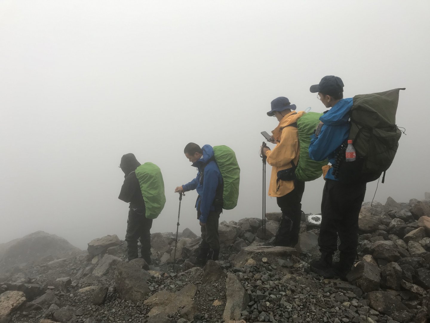 Their original plan for the next two days was to hike to Yarigatake, but they were met with pouring rain. They tried to climb up twice but failed both times due to the heavy fog. Climbing to the peak of Yarigatake requires a certain degree of mountaineering skills. As they were soaked through by then, they decided to retreat and go back to the hut to replan.