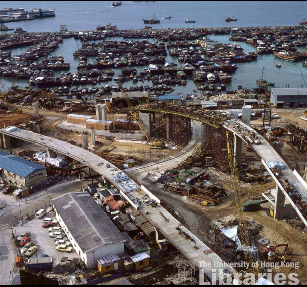 The photo shows the construction of the MTR Hong Kong Island Line in Shau Kei Wan. It shows where the previous coastline in Shau Kei Wan was.