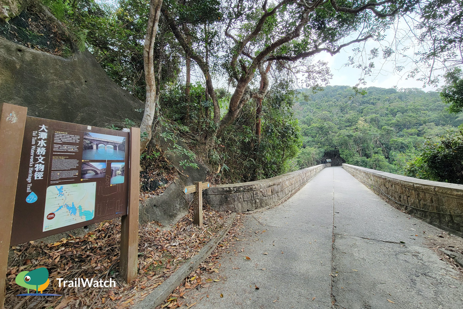 The entire heritage trail will pass through four British-style masonry bridges at Tai Tam Tuk Reservoir.