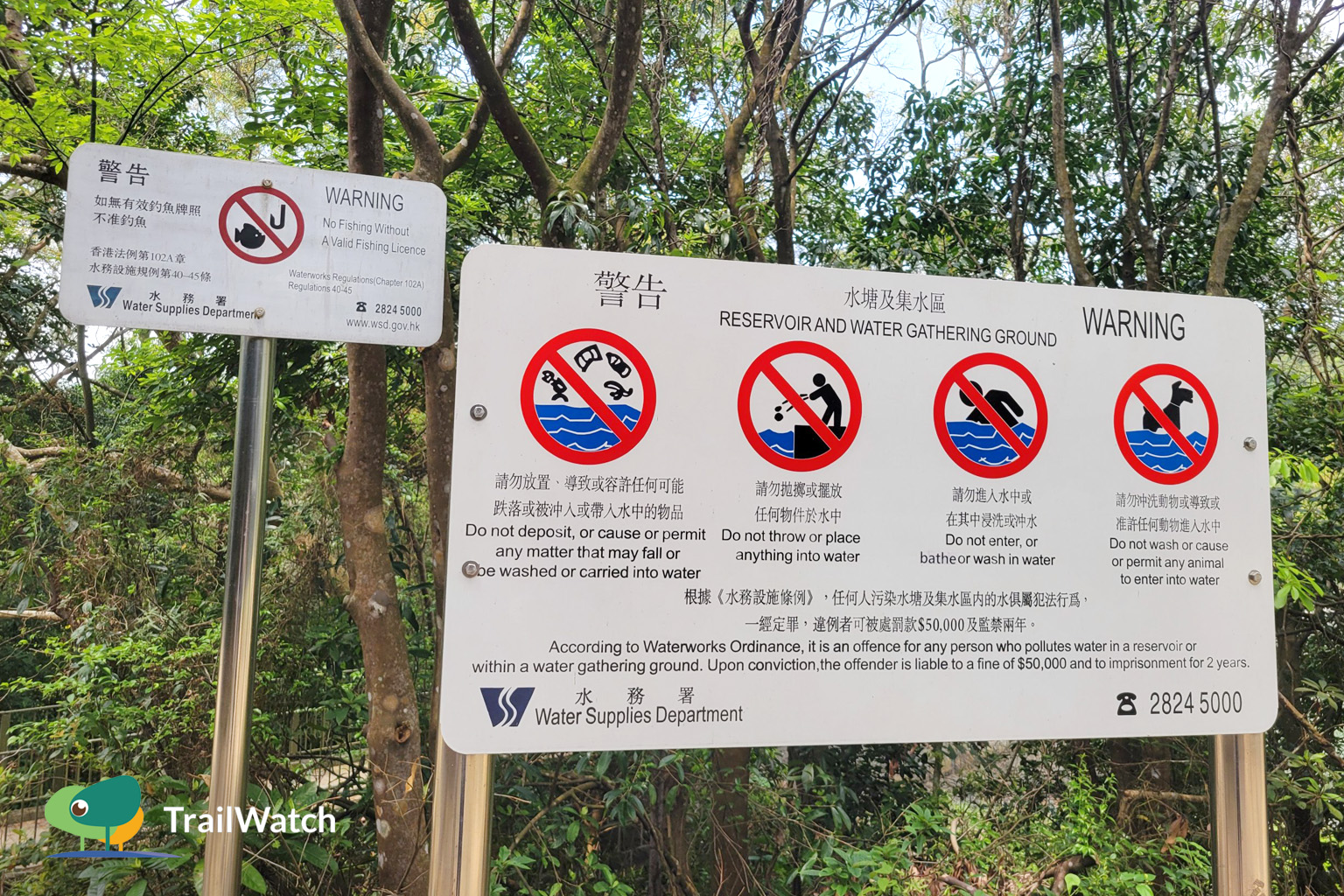 The Water Supplies Department has set up warning signs near the reservoir to protect the natural environment and prevent pollution of the water source.