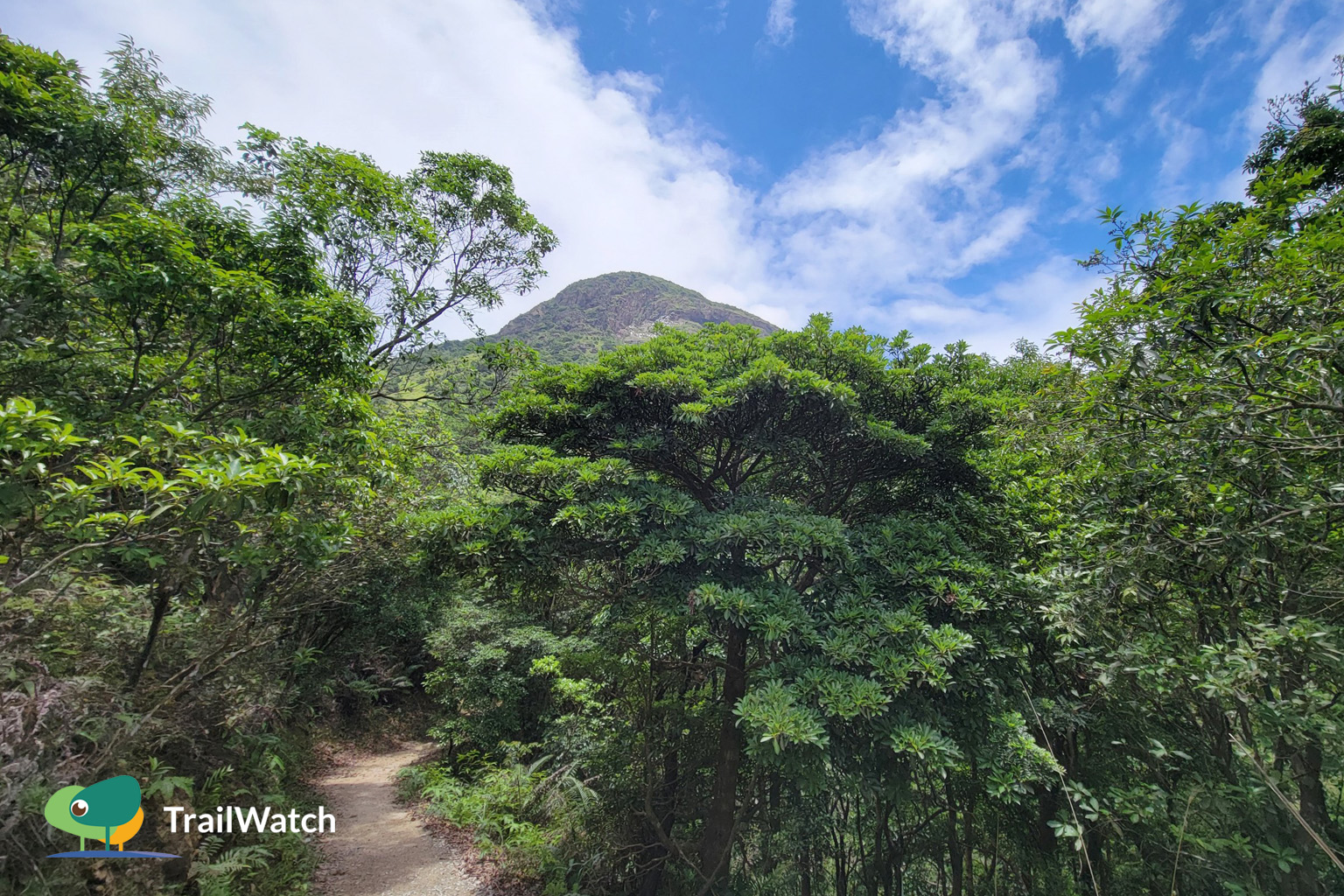 The country trail runs around the mountainside of Lantau Peak.