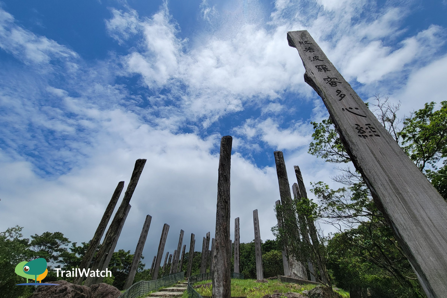The Wisdom Path in Ngong Ping has 38 wooden pillars engraved with the Heart Sutra scripture.