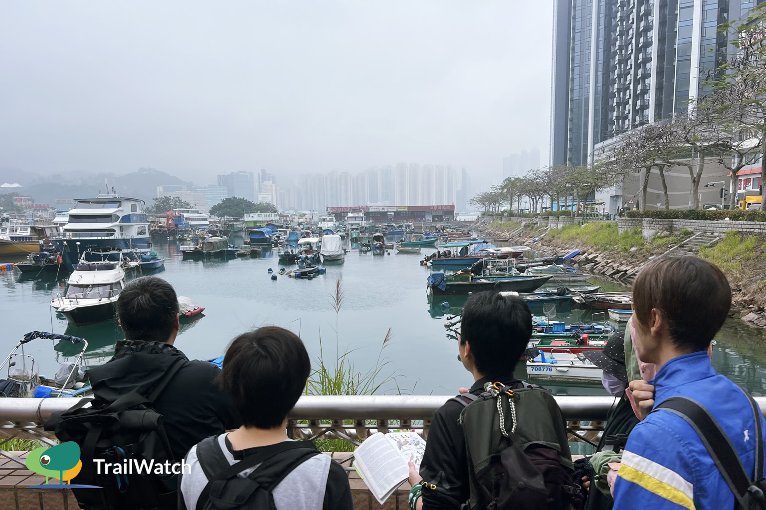 In the foggy early spring, our group of 11 people gathered at the Yau Tong MTR Station and set off, passing through parks and walkways to the Lei Yue Mun Archway. As we passed by Sam Ka Tsuen Typhoon Shelter, we spotted birds on the boats and Holis took out a binocular and a bird-watching guide to share her knowledge with the participants.