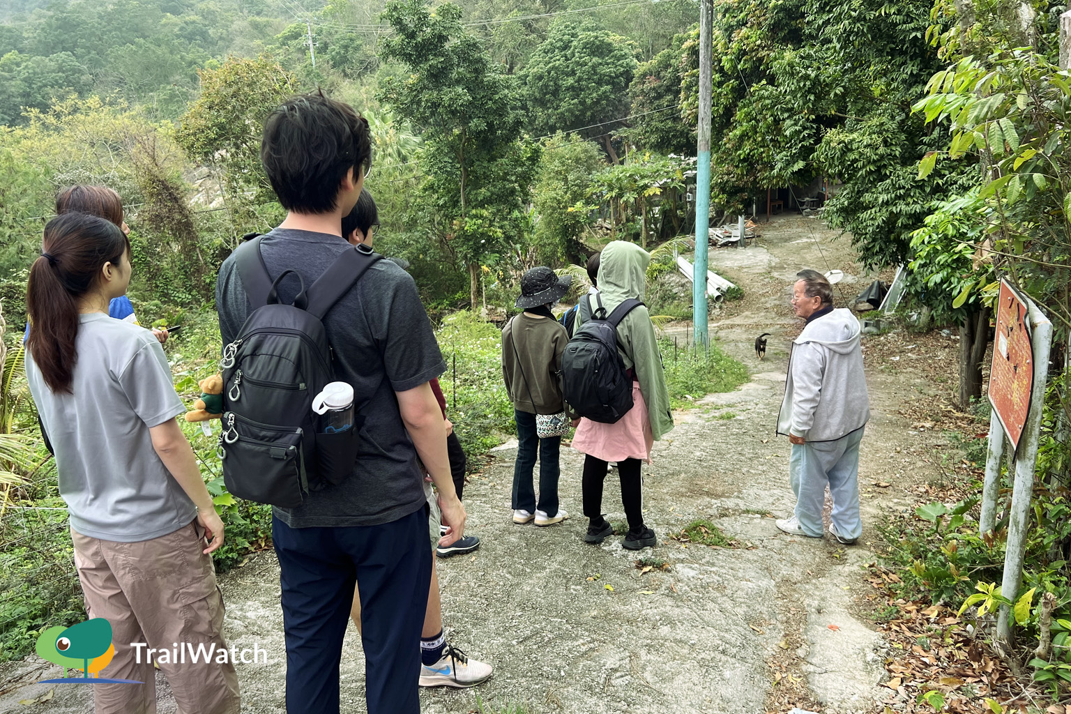 There is a cement road down, and we happened to meet Uncle Man (文叔), a villager who lived there for over 60 years. We chatted with him casually and played with the dog he raised. As we continued walking, we saw some abandoned village houses and some newly renovated village houses. In recent years, some villagers have chosen to return to the countryside from the city, and Mr. Li, who lives next to the main path, is one of them. When we approached his home, his dogs started to bark, and Mr. Li looked out and saw the familiar faces from Zaap Yau, so he chatted with us. He shared that the government has recently entered the village to conduct soil exploration work and has also negotiated with villagers. He estimated that the reclamation plan at the foothill would begin next year, and he believed that this Yau Tong backyard trail would face dramatic changes.